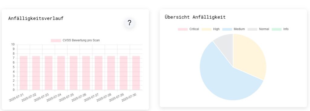 Beispiel eines externen Scans mit dem Verlauf und Anzeige der fehlenden Updates nach Risiko